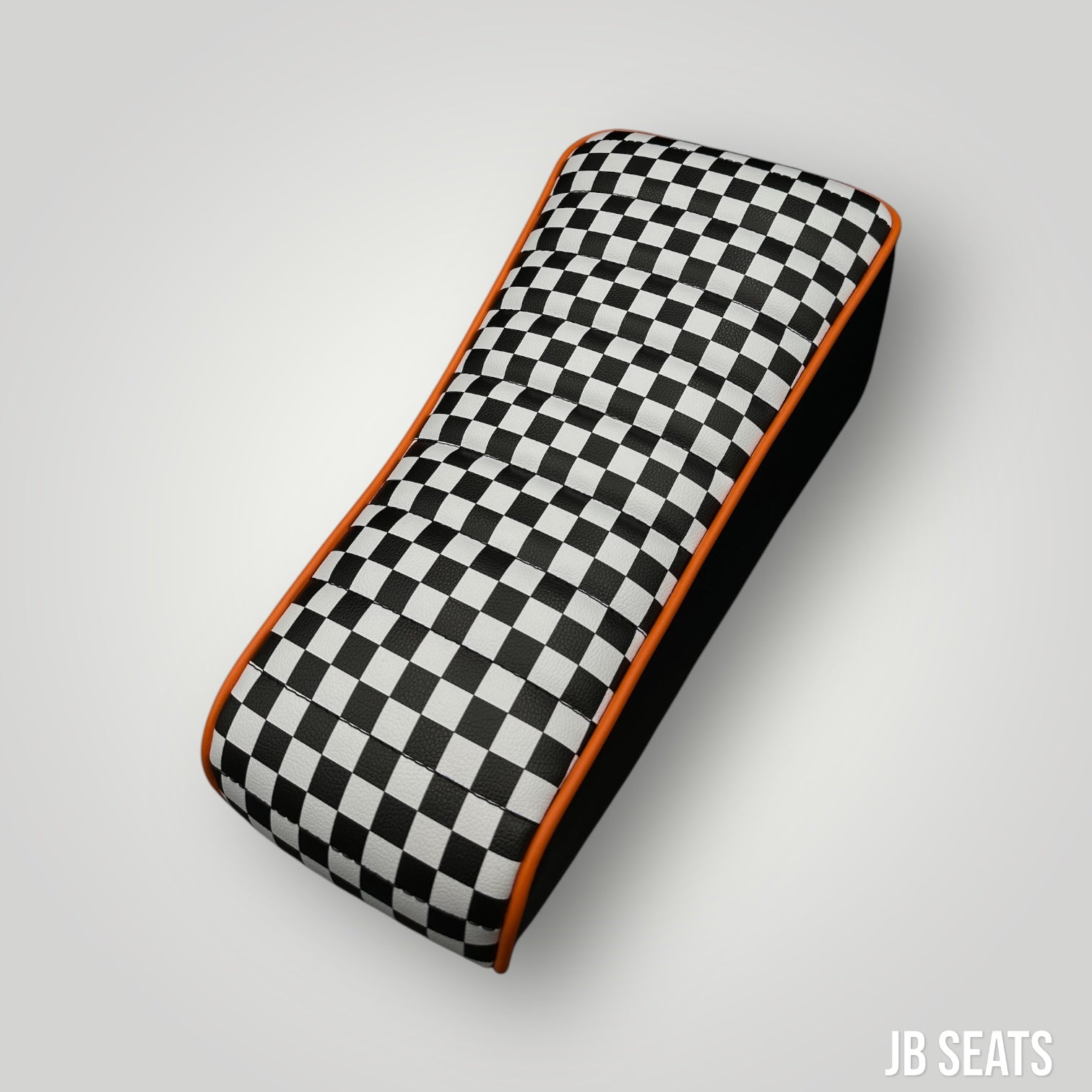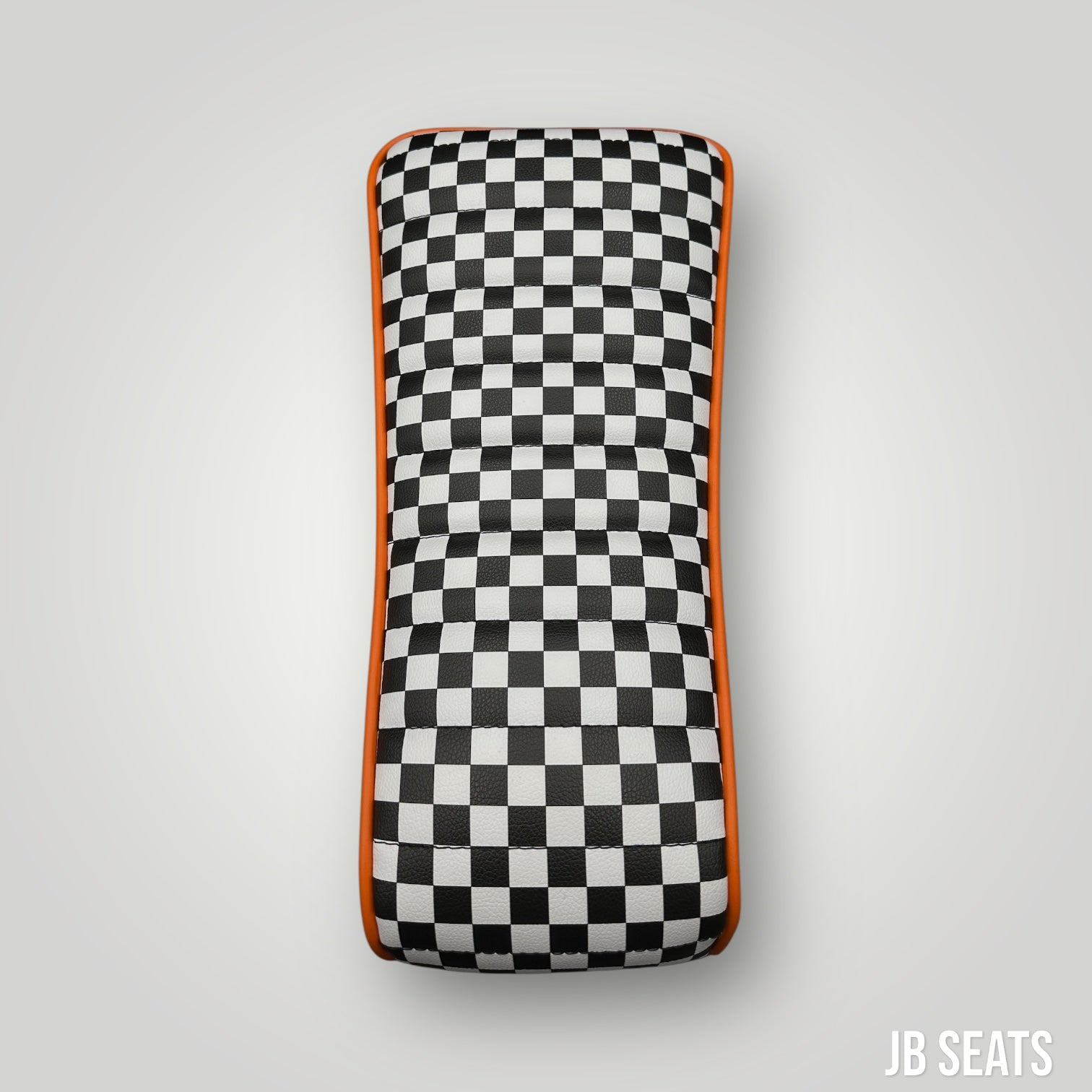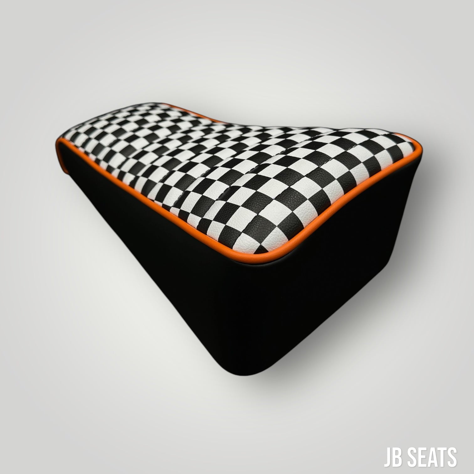 Get ready to elevate your ride with the ultimate mini bike racing seat! Imagine bold black-and-white checkers paired with a striking burst of color that not only enhances your bike's aesthetic but also shouts speed and excitement. Don't just ride-make a statement! Upgrade your style and boost your performance today with JB Seats!