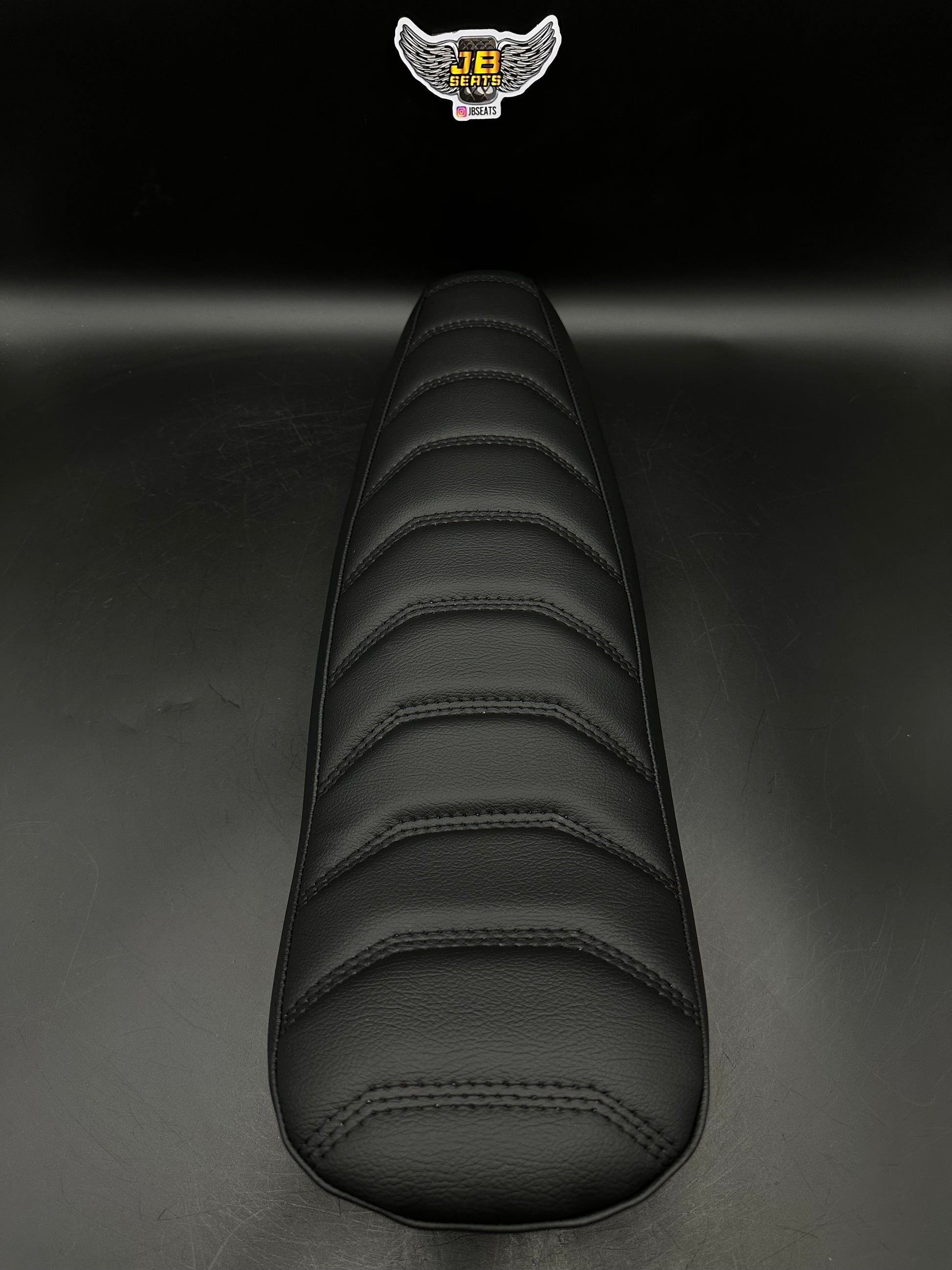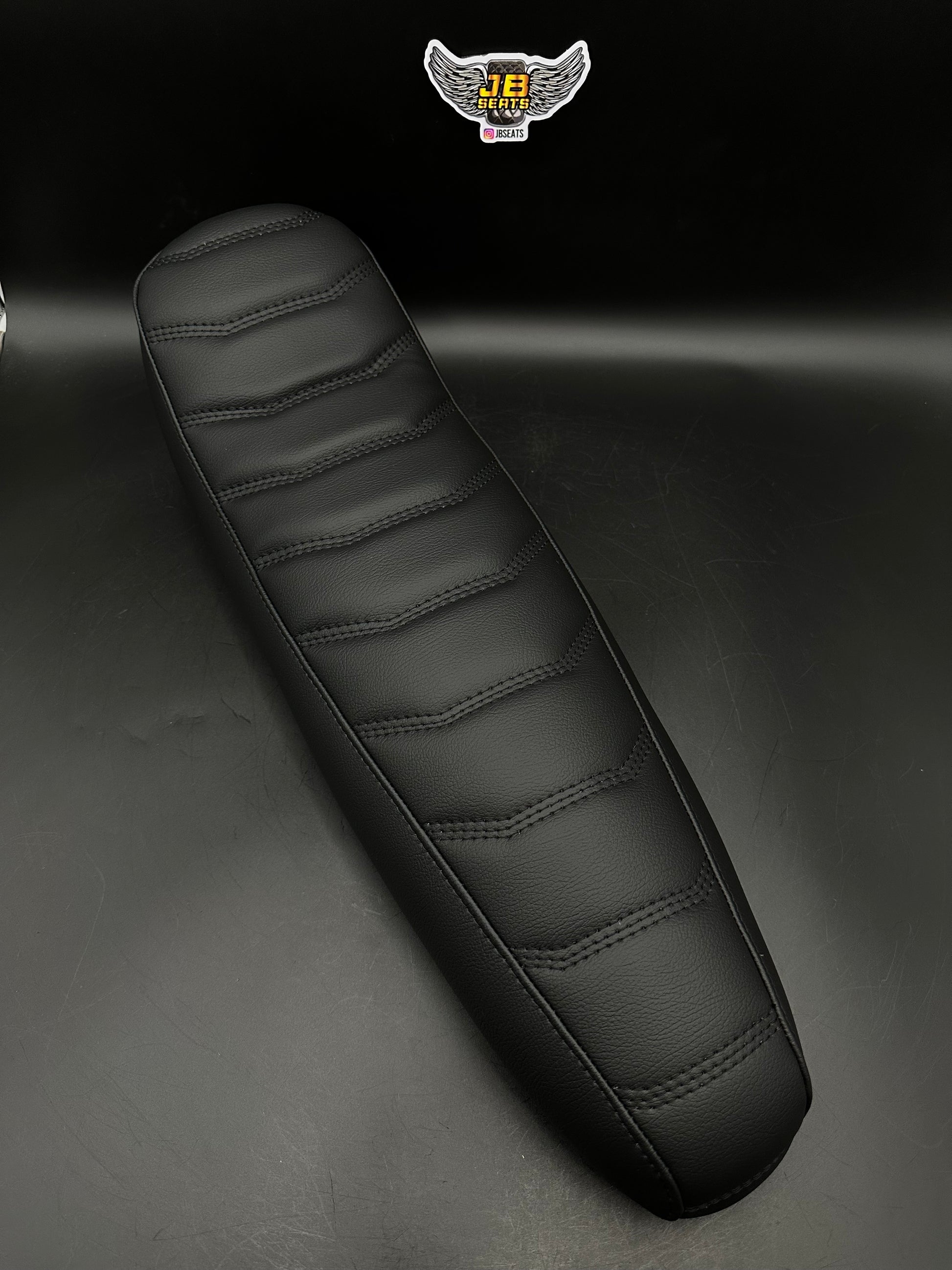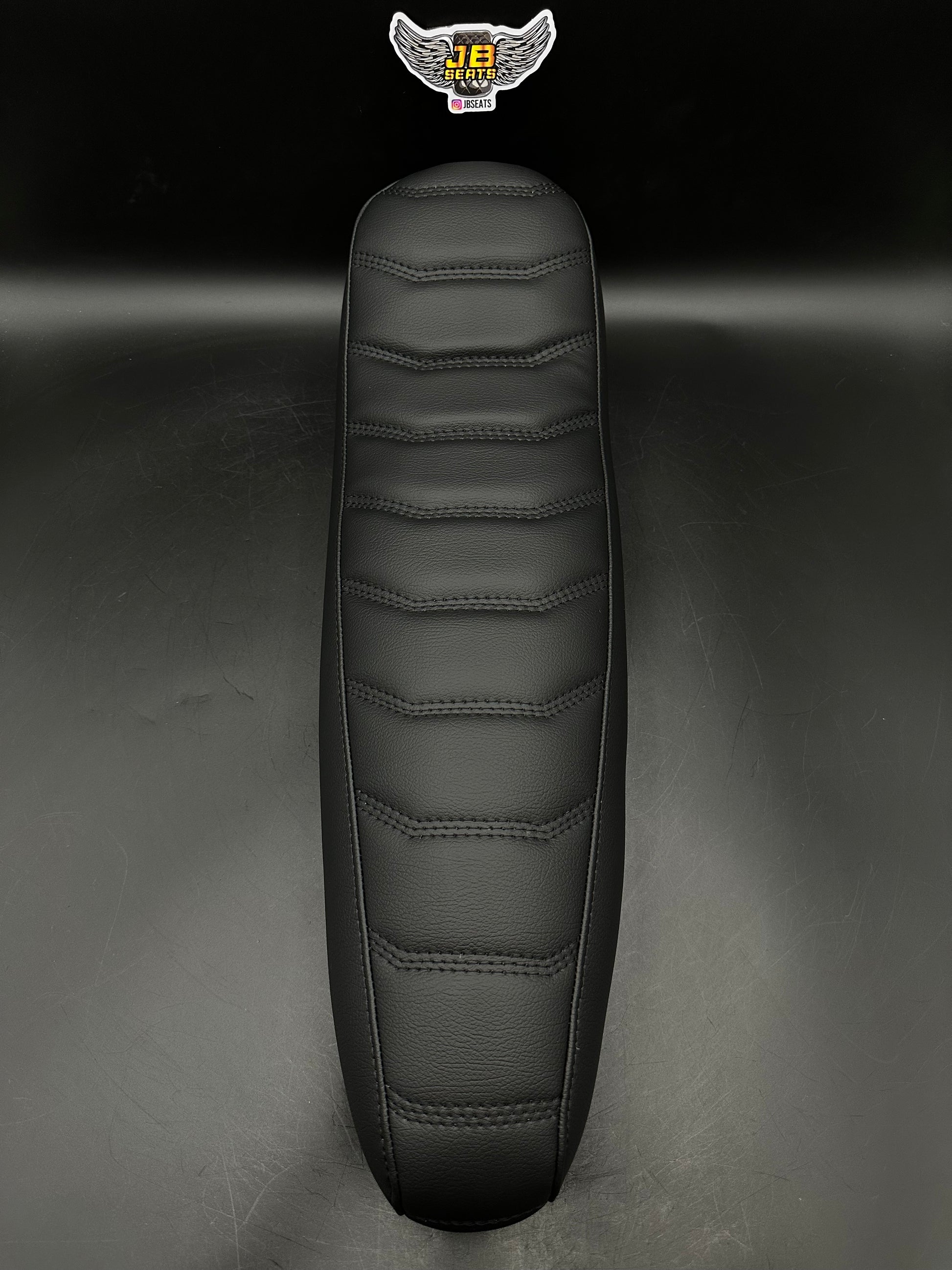 The Throne seat is a premium seat that features a sleek black on black color scheme with our detailed digital stitch pattern that adds sophistication. The 23-inch length seat ensures a generous sitting area, allowing for a comfortable riding experience which allows ample space to shift position during long rides. One of the stand out design element is the rear flip detail that enhances the overall aesthetic of the seat. The cushioning adapts to the rider's body contours and absorbs shocks reducing the impact on the riders back.